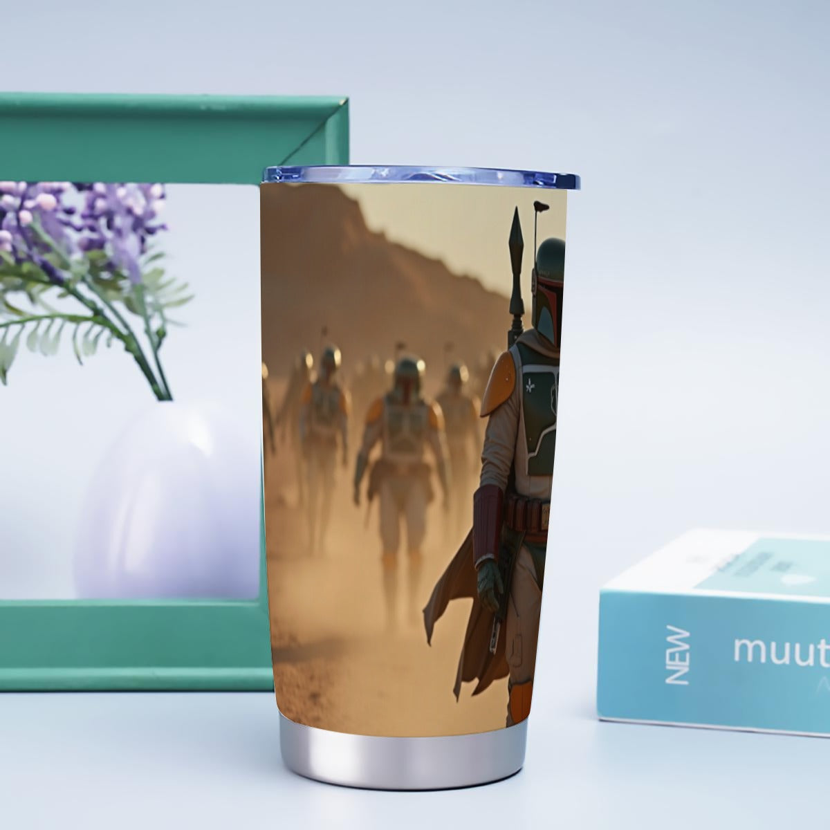 The bobafett stainless steel mug is the perfect insulated travel cup for anyone who needs a reliable thermal drink container on the go. This 20oz stainless tumbler keeps drinks hot or cold for hours, making it an ideal portable coffee mug or travel drinkware companion. Crafted from 100% durable metal cup materials, it offers rust resistant mug qualities and corrosion resistant flask performance to ensure long-lasting use. The double wall mug design provides excellent insulation, while the spill proof lid cup prevents leaks and spills during your daily commute or outdoor adventures.
