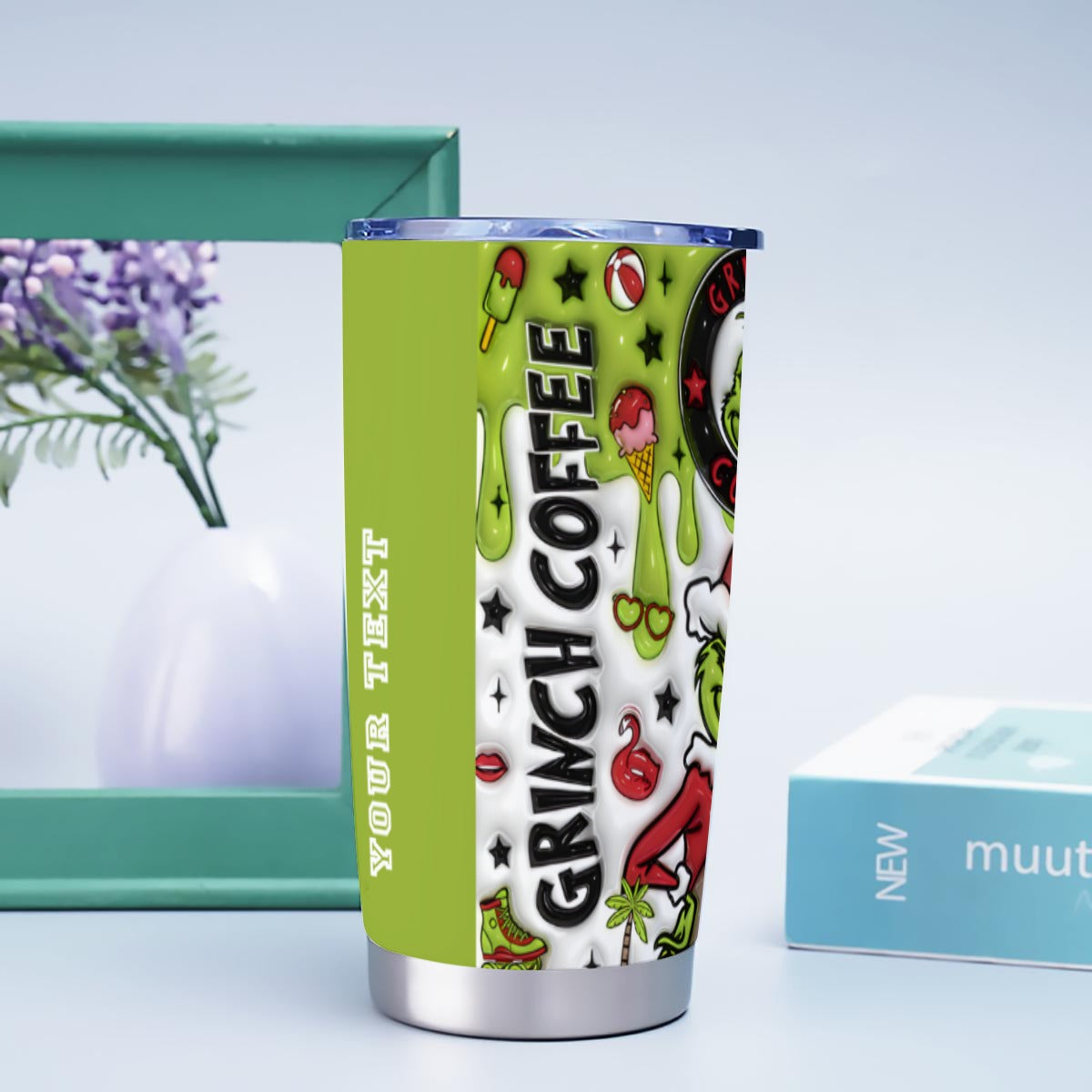 The X-SBGrinch-INT stainless steel mug is a personalized 20oz insulated travel cup designed to keep drinks hot or cold for hours, making it the perfect companion for your daily commute, outdoor adventures, or office use. This rust resistant cup features double wall tumbler technology that maintains your beverage’s temperature while preventing condensation. Crafted from 100% corrosion resistant stainless steel, this metal coffee cup offers durability and long-lasting performance without staining or corrosion. The spill proof lid cup design ensures no leaks or spills, giving you a leak proof travel cup experience wherever you go.